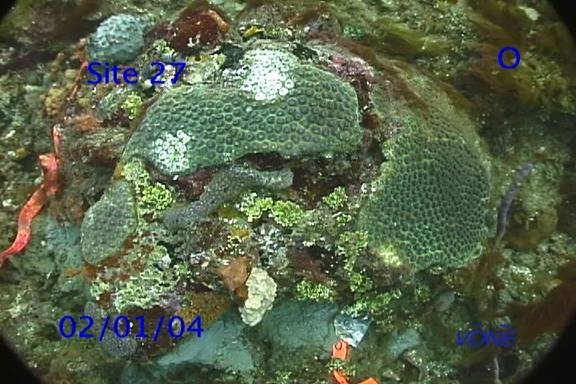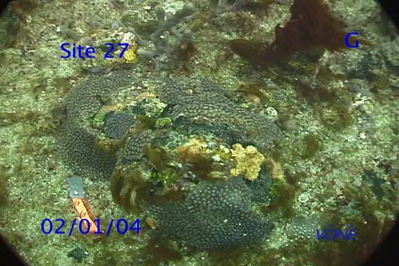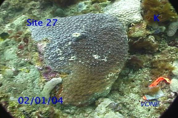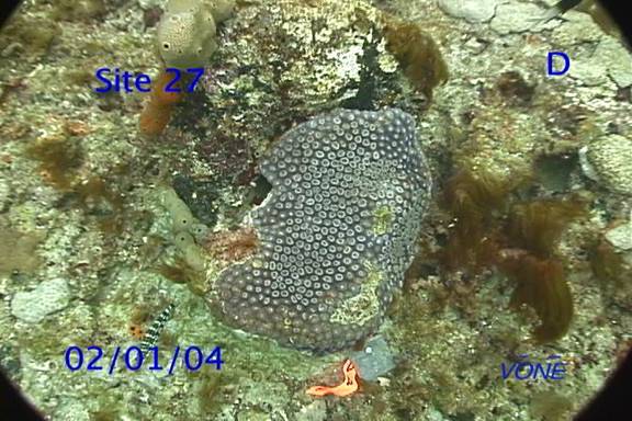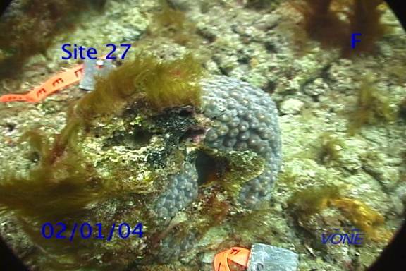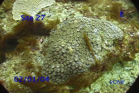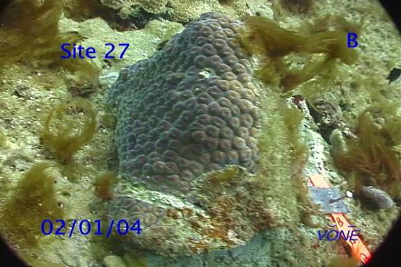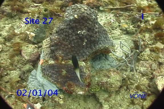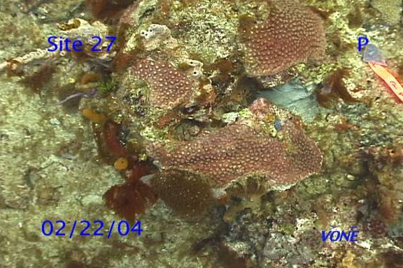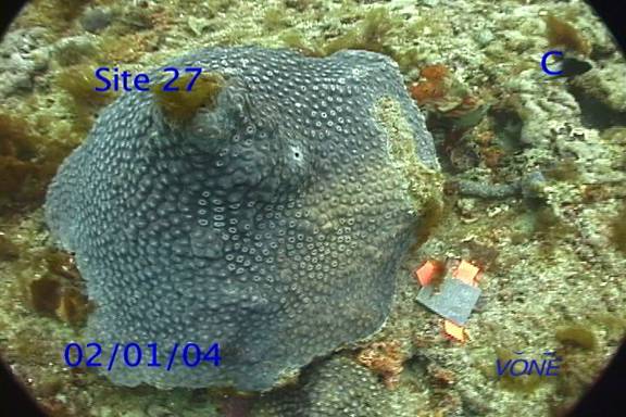 Vone has completed the stabilization of the coral on site 27. We have placed two permanent datum markers at DGPS N 26 15.586 , W 080 04.317 & N 26 15.583 , W 080 04.314. We also have placed a permanent lead tag by each coral with a letter associated with that coral. All of the stabilized corals on the site have been measured and photographed. We have created a rudimentary base-line map of the site.